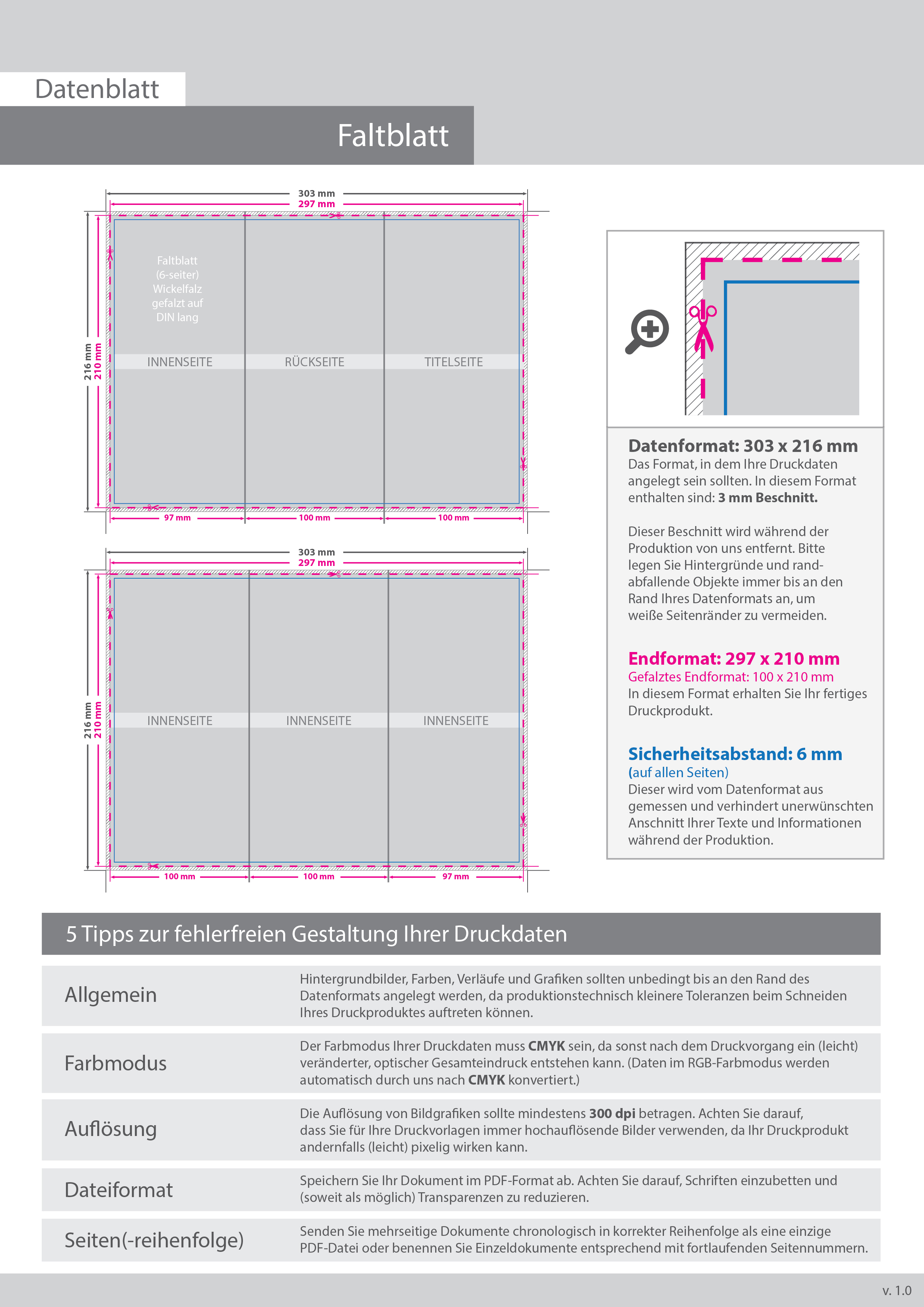 Faltblatt, gefalzt auf DIN lang, 6-seiter (Wickelfalz)
